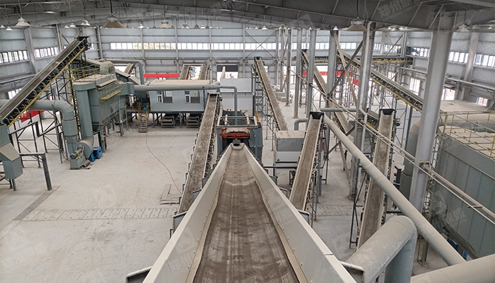 預處理(lǐ)階段:裝修垃(lā)圾首先通過運輸車輛送入料鬥,由振動給料機均勻地送入破碎機進行初(chū)步破碎。破(pò)碎機可將較大的垃圾(jī)塊破碎成較小的顆粒,便於後續(xù)的分揀處理。