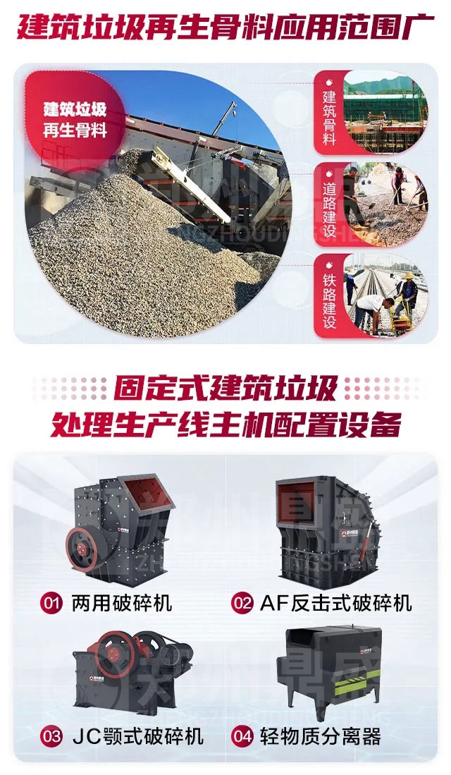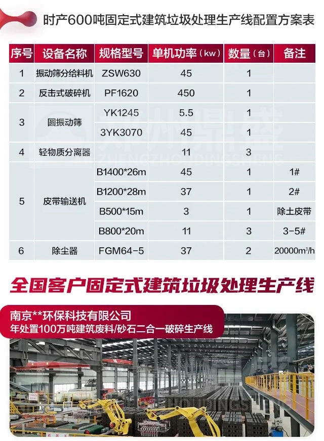 設備配置:建築垃(lā)圾破碎機(jī)、振動篩分給料機、圓(yuán)振(zhèn)動篩、除鐵器、輕物質分離器(qì)