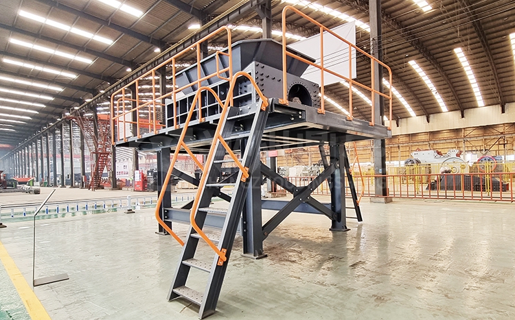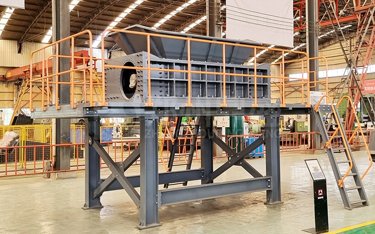 固(gù)廢破碎生產效率高的主流破碎設備之一,多被用於(yú)各種固廢破碎的首道工序。雙軸(zhóu)撕裂機主要由主(zhǔ)軸、刀片、中梳板(bǎn)、箱體、動力係統等組(zǔ)成。采用低轉速、大扭矩雙液壓(yā)馬達直接驅動刀輥。