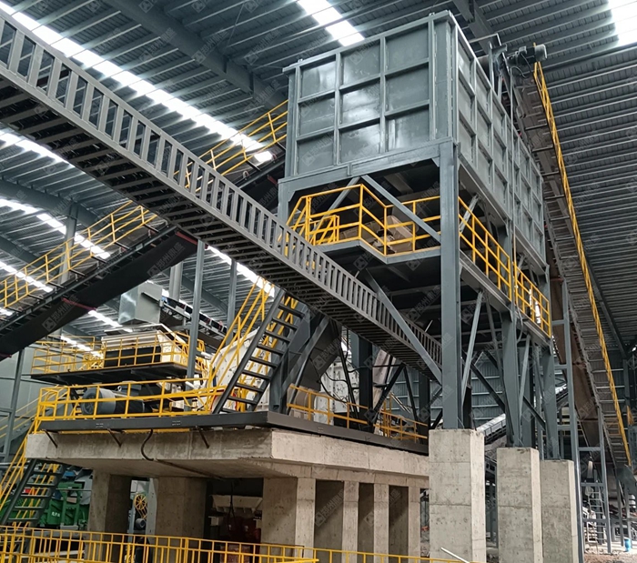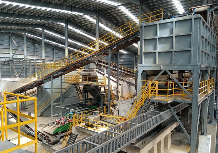 設備配置:板(bǎn)式喂料機、階梯棒條(tiáo)篩、雙軸撕裂機、滾筒篩、臥式打散風選機、人工分揀倉、除鐵器、收塵器等(děng)
