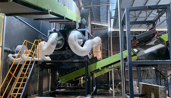【設備配置】:鏈板給料機 雙軸(zhóu)撕裂機 除鐵器 複合階梯篩 臥式風選機 人工分(fèn)選倉