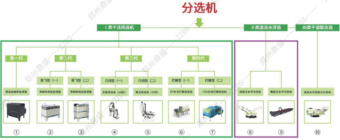 2、除(chú)雜裝備:鏈板式水浮分選機;螺旋式浮選(xuǎn)分選機;幹濕聯合分選(xuǎn)機。