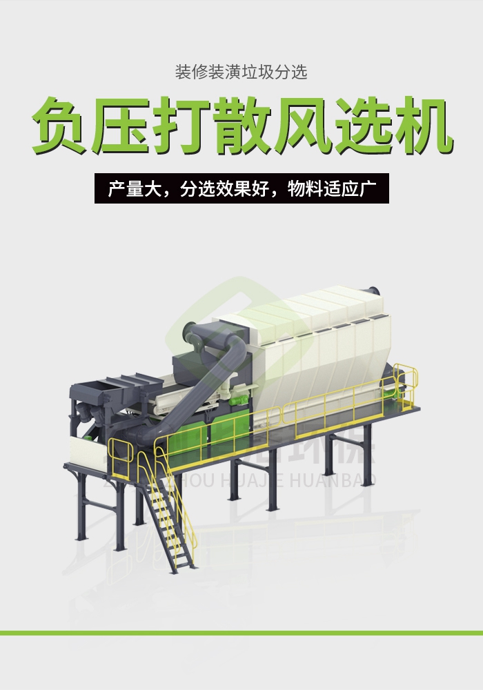傳統篩分工(gōng)藝的局限性導致我國建築裝修垃圾處置始終(zhōng)處(chù)於較低水平。為了(le)提高建(jiàn)築裝修垃圾的資源再利(lì)用率,國內(nèi)已經(jīng)有企業提出了全新的處置理念並推出了新一代智能分選設備——負壓臥式風選機(jī)