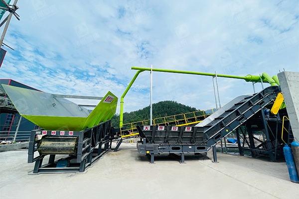 設備配置:板式喂料機、階梯(tī)棒條篩(shāi)、雙軸撕裂機、滾筒篩、臥式打散風選機、人工分揀倉、除鐵器、收塵器(qì)等