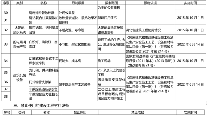 河北省推(tuī)廣、限製和禁止使用建設工程材料設備產品目錄(2022年版)