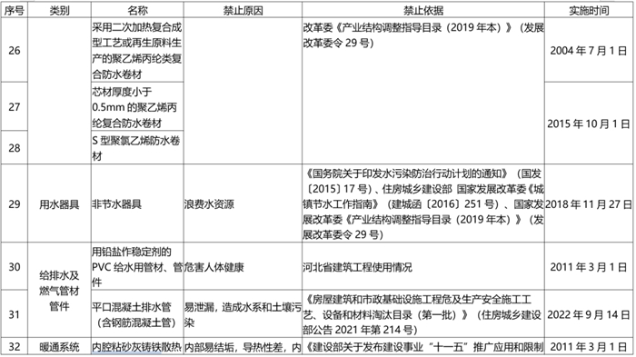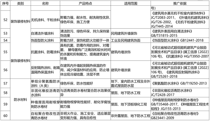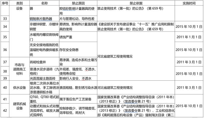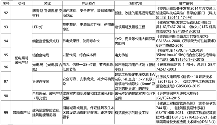 《目錄(lù)》由推廣使用、限製使用和禁止使用三部分組成,共收集201種材料設備,其中推廣部分114種(新列入42種)、限製部分38種(新列入12種)、禁止部(bù)分49種(新列入15種)。