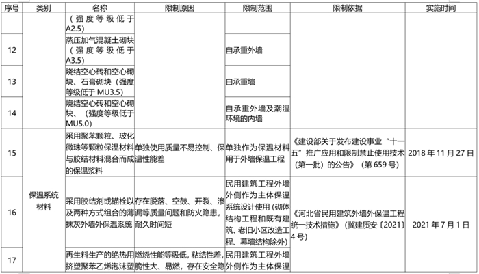 列入限製或禁止使用的材料設備,是社會關注(zhù)度較高或工(gōng)程使用中問題出現較多(duō),對工程質量、安全、節能、環保等影(yǐng)響較大(dà)的產品,各工(gōng)程建設單位不得(dé)違(wéi)規使用。