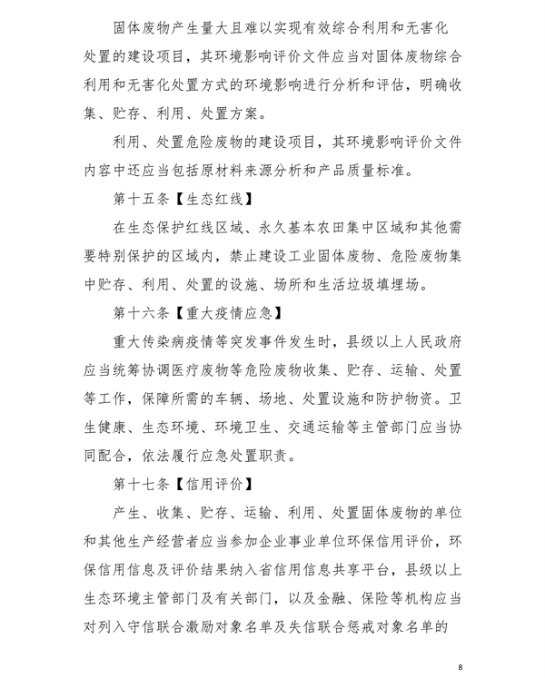 為深入(rù)貫徹黨中(zhōng)央、國務院決策部署,落實《中華人民共和國固體(tǐ)廢物汙染環境防治法》,全麵提(tí)升我省固體廢物汙染環境防治及資(zī)源化利(lì)用水平,有效防控(kòng)固體廢物環境汙染風險,我省擬對《河南省固體(tǐ)廢物汙染環境(jìng)防治條(tiáo)例(lì)》進行修訂,按照工作安排(pái),我廳起草了《河南省固體廢物汙染環境(jìng)防治條例(征求意見稿)》,現征求社會各界意見建議。
