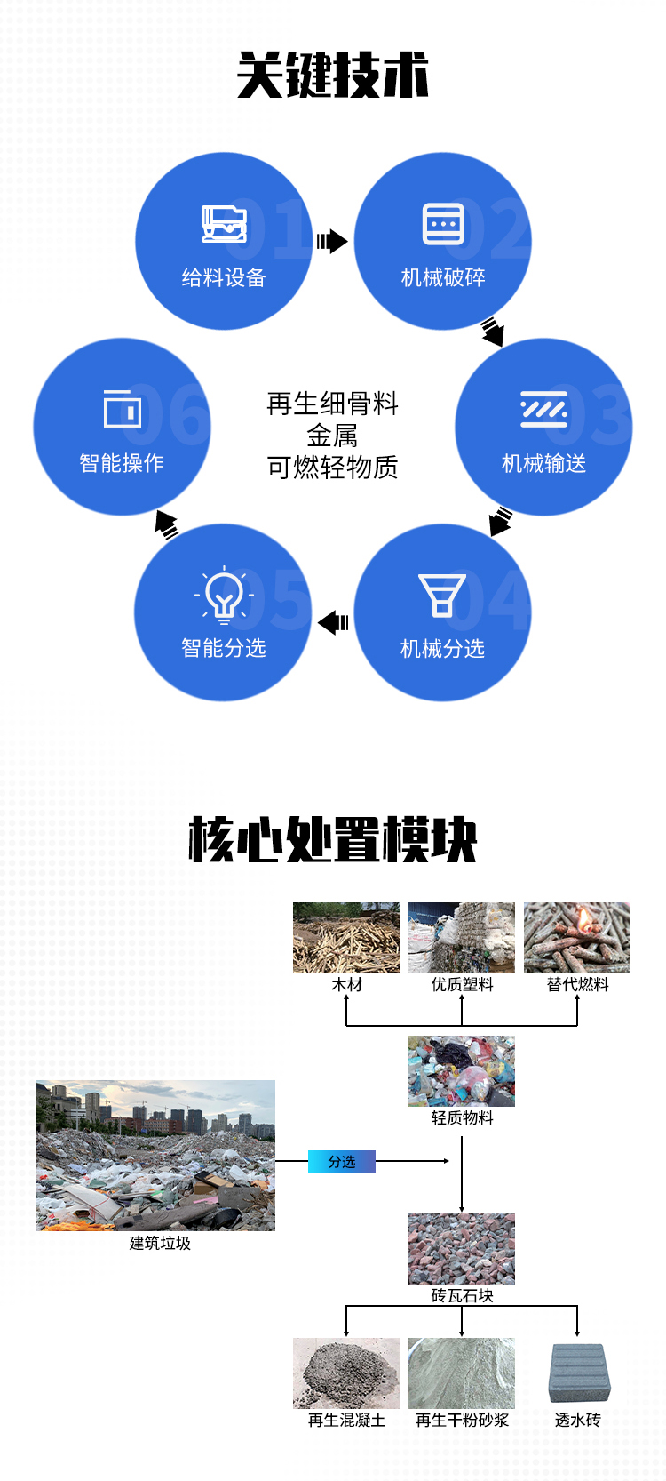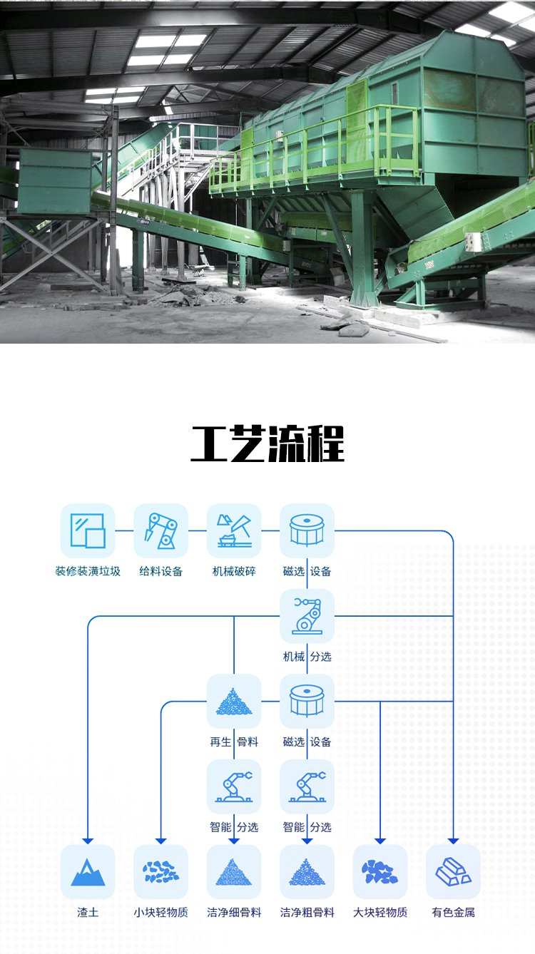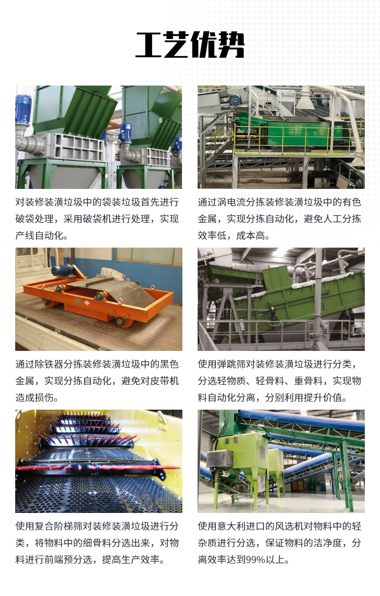 進(jìn)料粒度:【處理原料】:建(jiàn)築垃圾、裝修裝潢垃圾